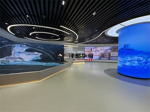 今天分享的是中卫水利水电办公楼装修设计实景照片,整体而言,该办公楼空间是银川装修公司津都华丽对“专业行业办公展厅”的优质落地:以极简工业风为基底,用科技载体承载水利水电的专业叙事,在功能实用性与主题表达力之间找到平衡,既展现了行业的硬核科技感,又传递了水利工程的人文价值。材质与细节上,银川装修公司津都华丽的“实用美学”理念贯穿其中:展墙采用模块化金属嵌板,既符合水利展厅的科技质感,又满足内容更新的弹性需求;灯光系统以间接照明为主,环形灯带与嵌入式射灯的组合,既保证空间明亮度,又通过光影层次营造科技氛围;而流线型展陈台的圆角设计、地面的隐形收边工艺,则体现了津都华丽在工业风设计中“细节柔化”的巧思。
